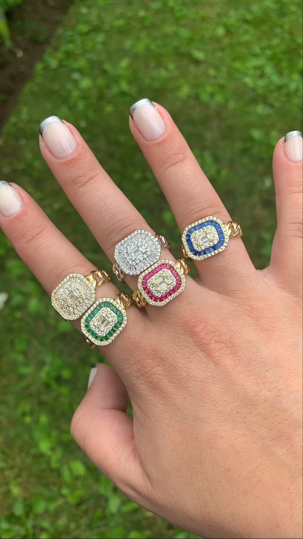 TJ111 TIMELESS JEWELS CUBIN LINK STONE RING